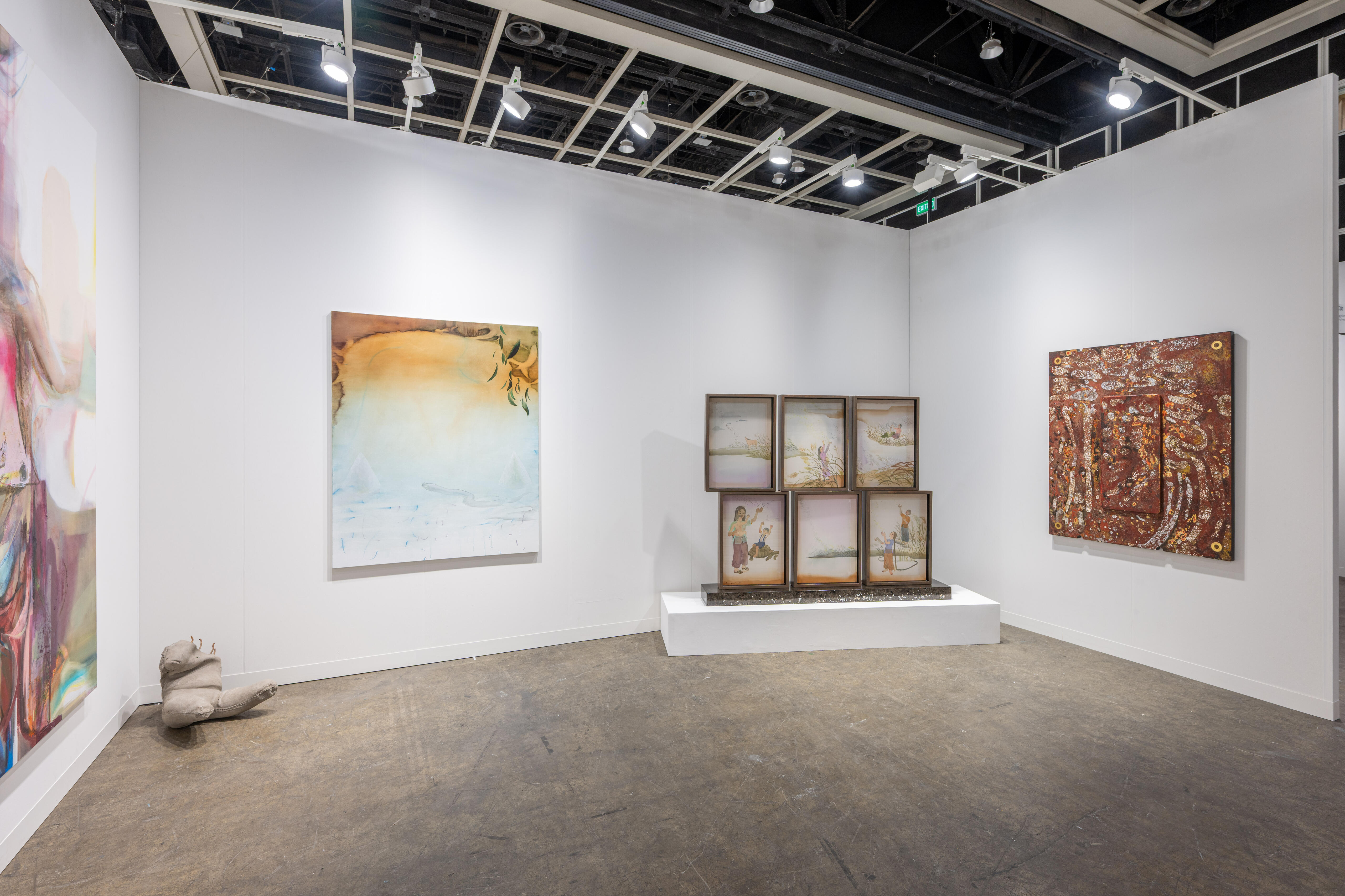 Also on view are recent paintings by Brook Hsu, Chou Yu-Cheng, Trương Công Tùng, Tseng Chien-Ying, Kaifan Wang, Chang Ya Chin, Hiroka Yamashita, Yeung Hok Tak, Cui Xinming, and others. Two of Liu Yin’s new paintings, including the unexpectedly dramatic Vegetarian Eagles Plundering Innocent Turnips (2026), make their debut at Art Basel Hong Kong 2026, along with playful existing pieces such as the absurd yet innocent The meeting on the grass (2023).