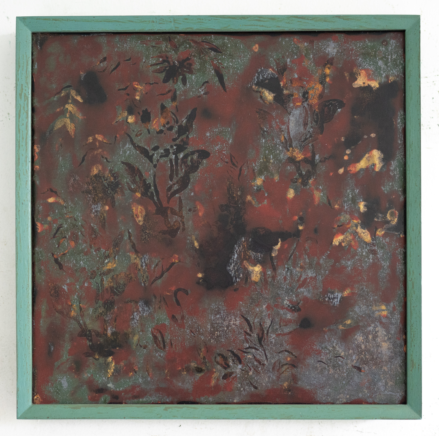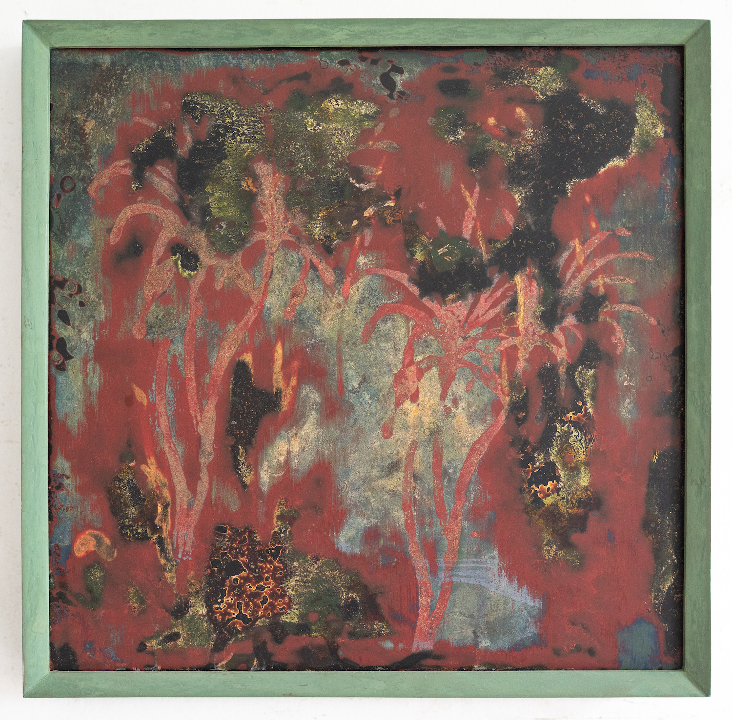 Vietnamese lacquers, silver leaf, gold leaf on terracotta in artist’s frames