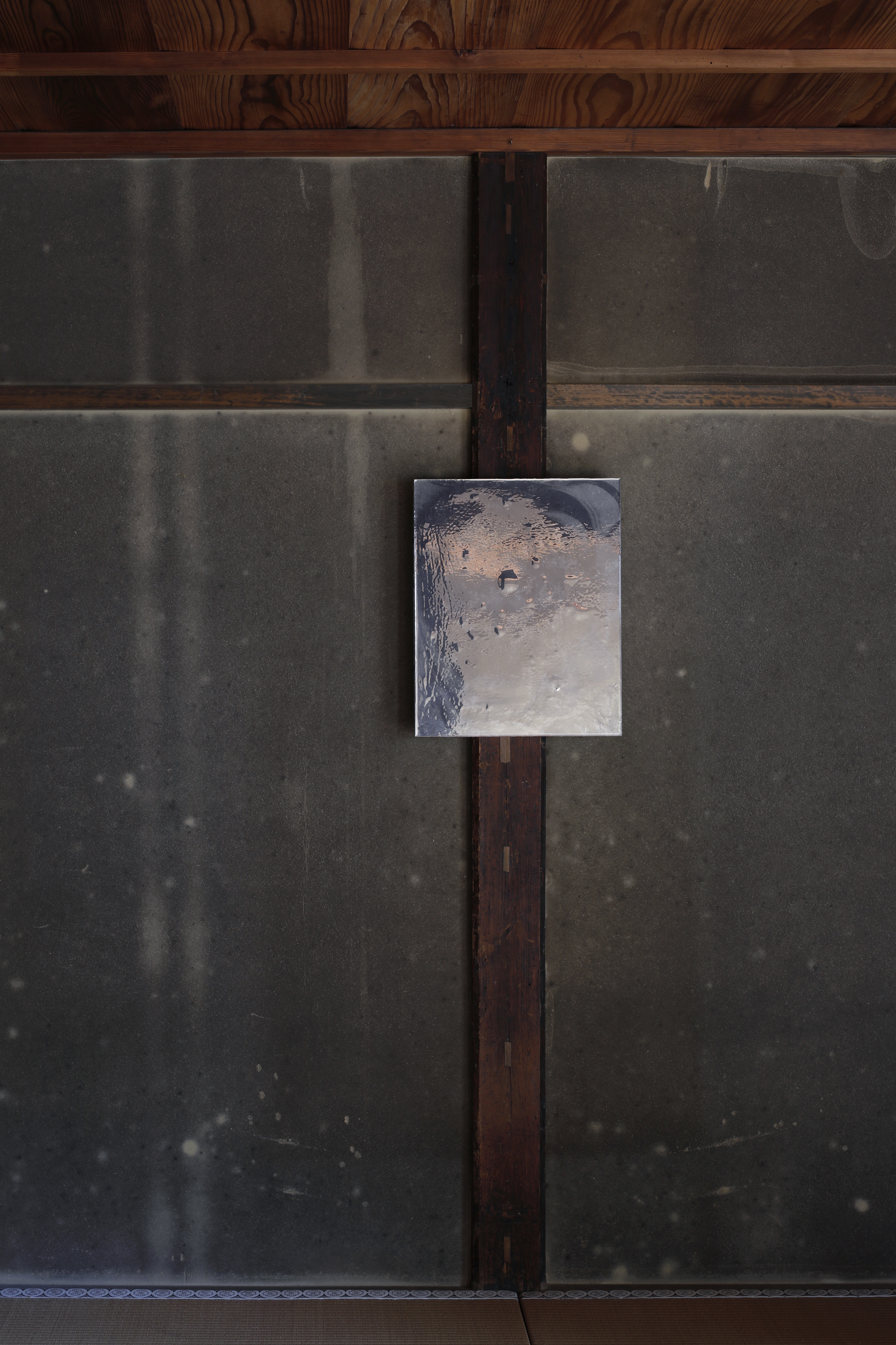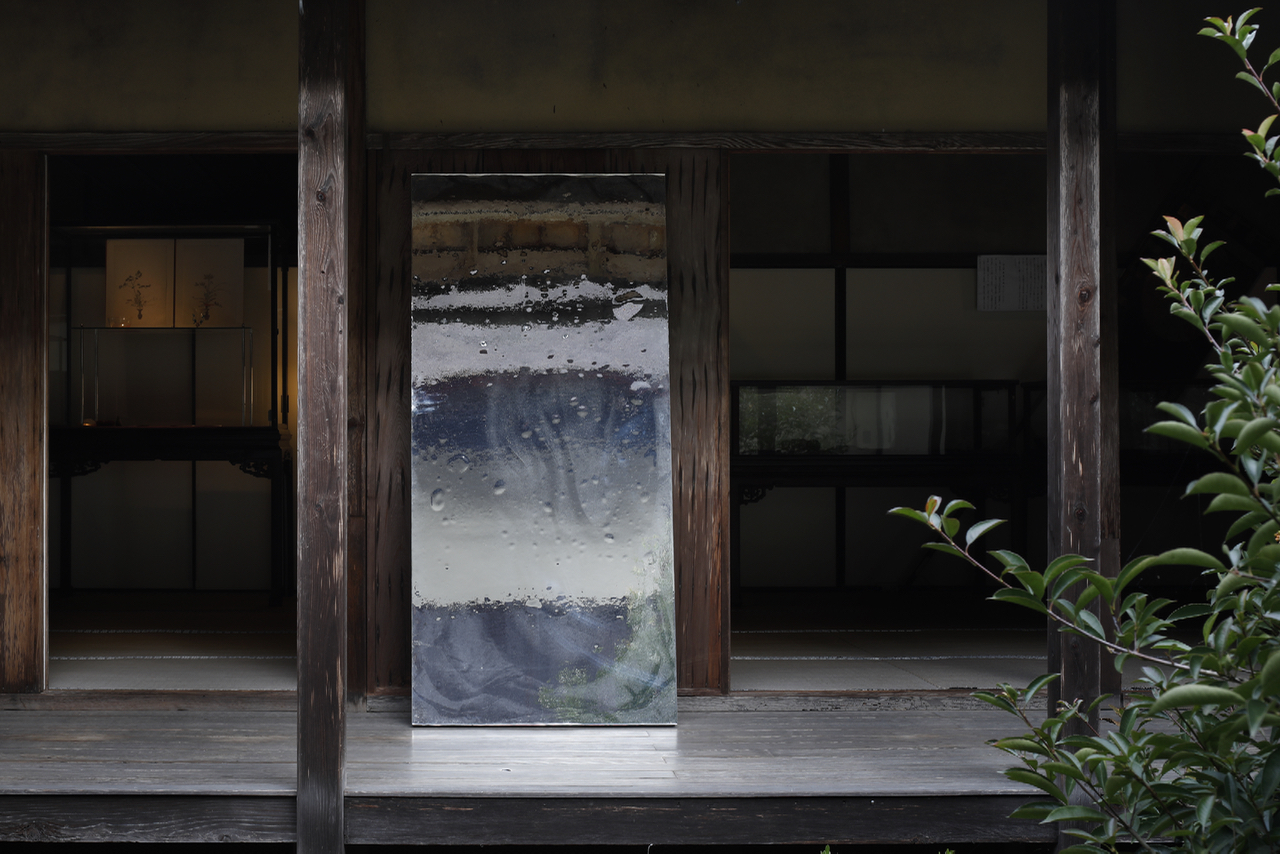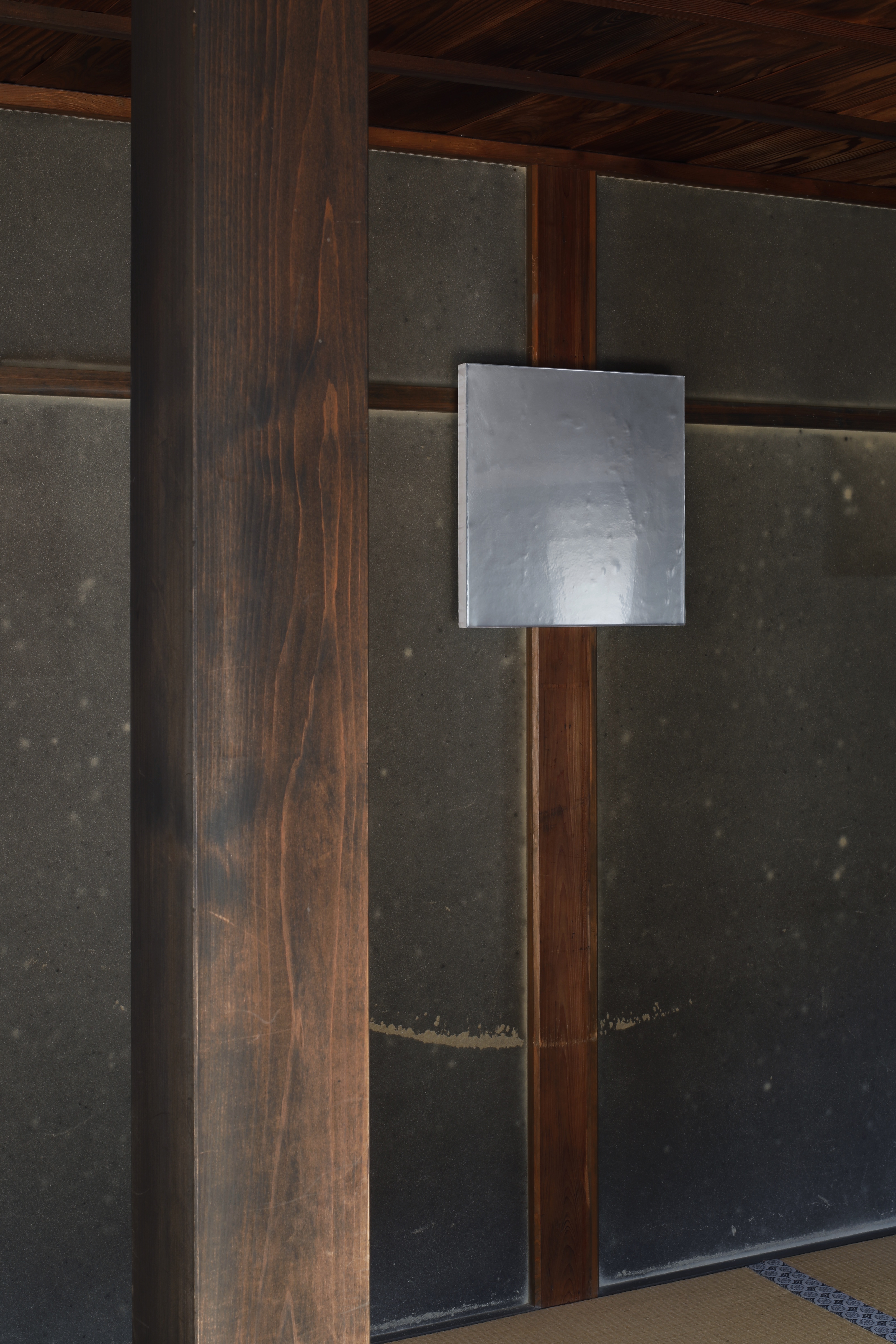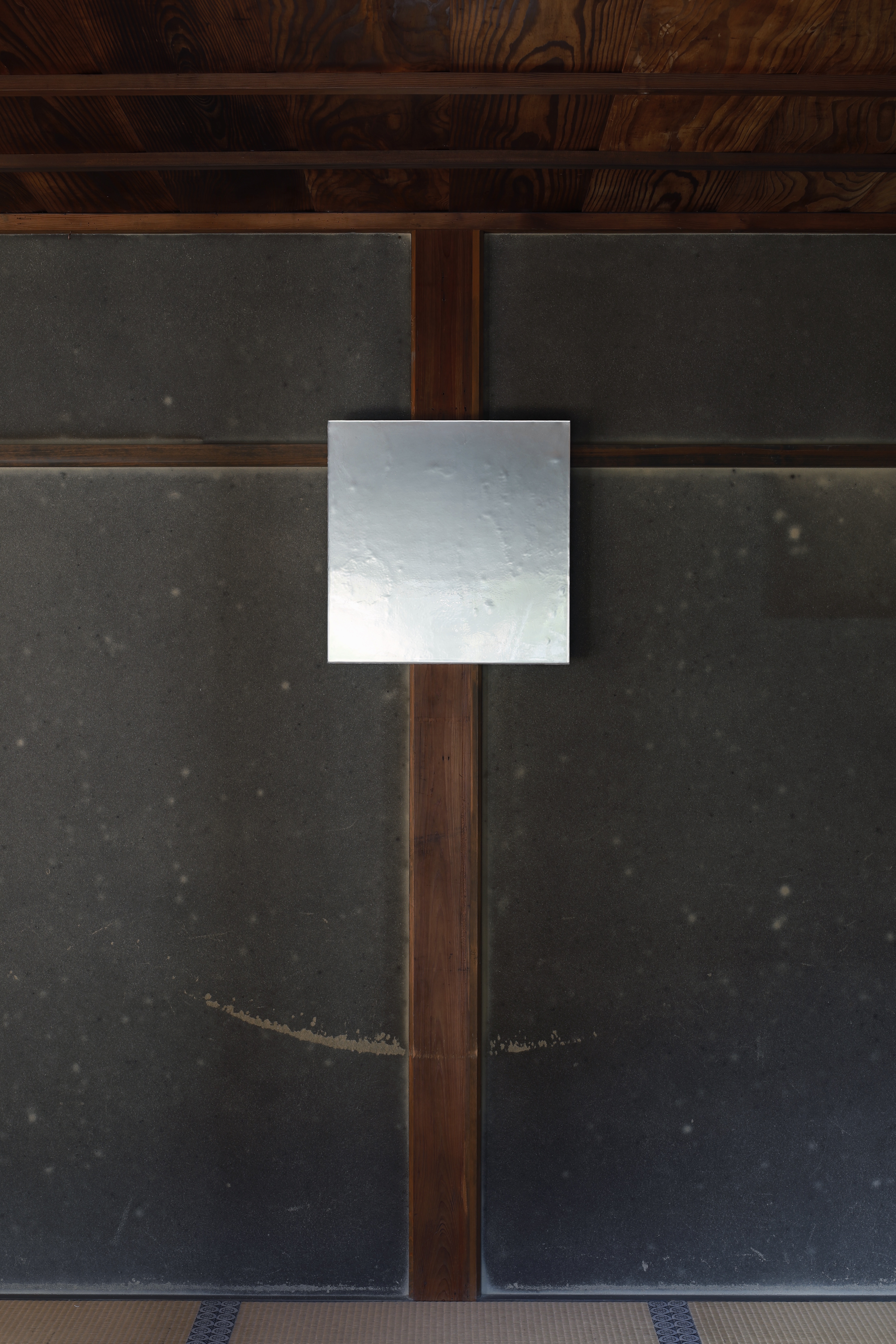 Responding to Manshu-in’s porous spatial boundary between the inside and the outside, Yamaoka guides the viewer by employing the toggling perspectives of looking into and out of, from a distance and close-up. Her works, partially exposed to the elements, catch the intensity of sunlight and shadows at different times of the day, reflect what lies beyond through changing air currents and wind, and coalescing perception with the viewer’s internal rhythm.