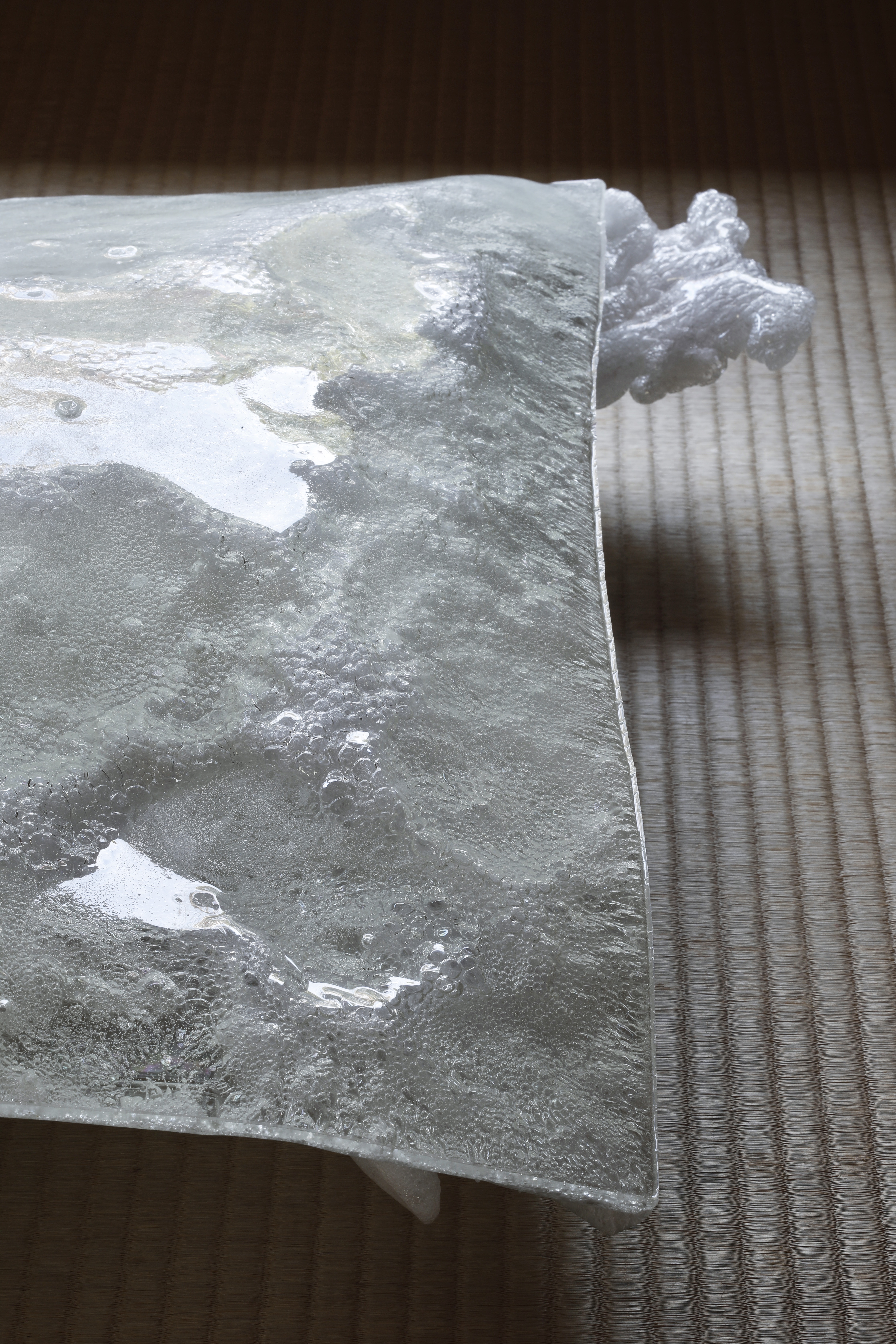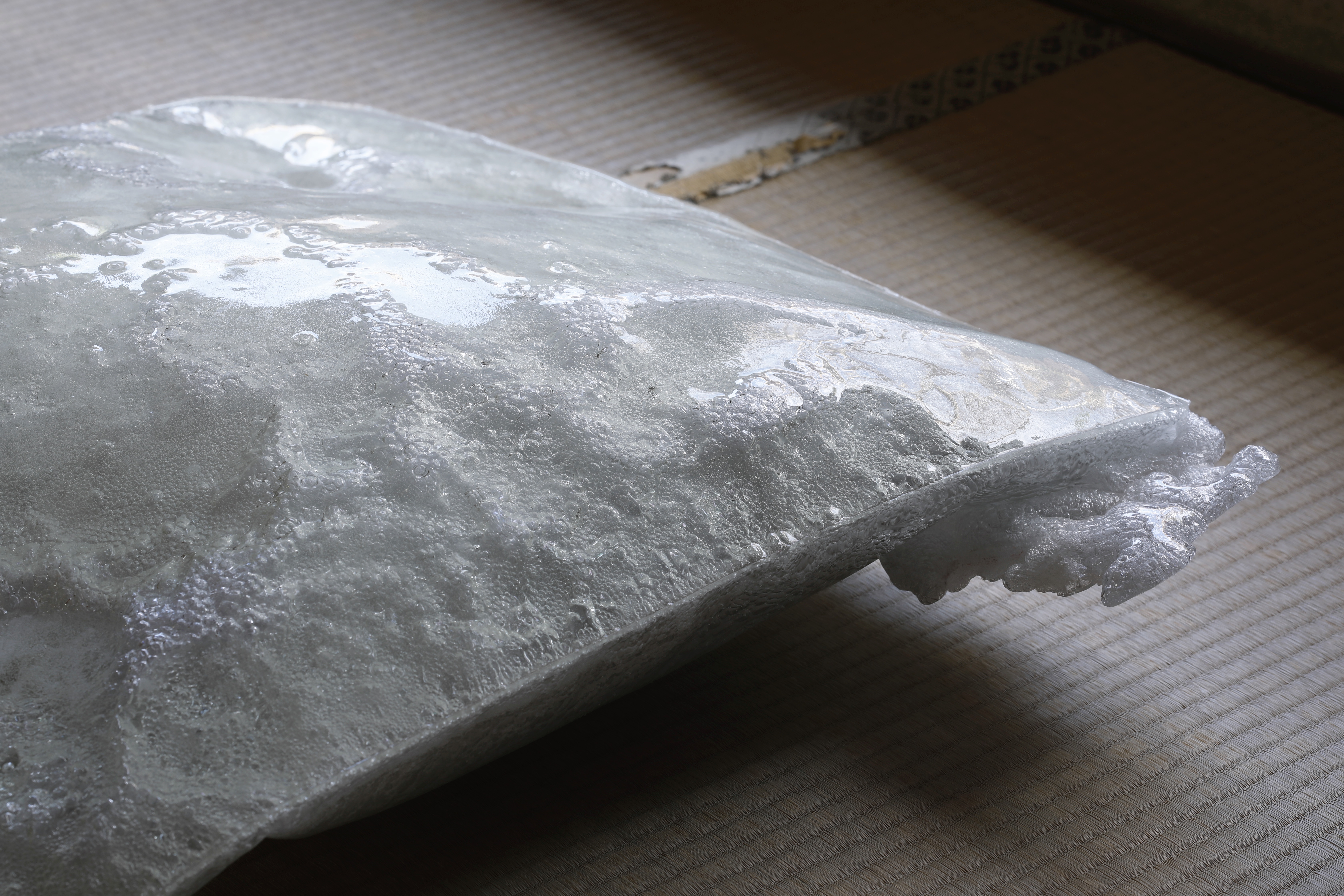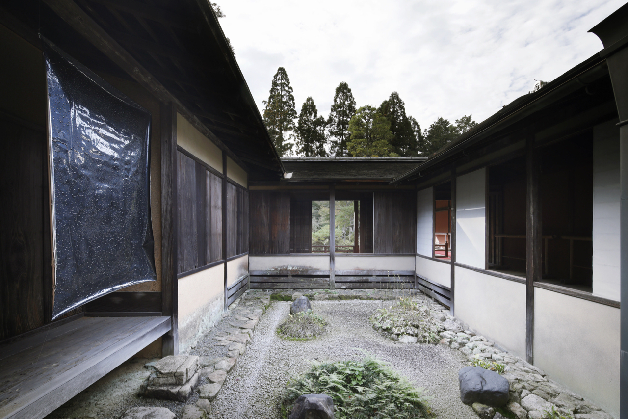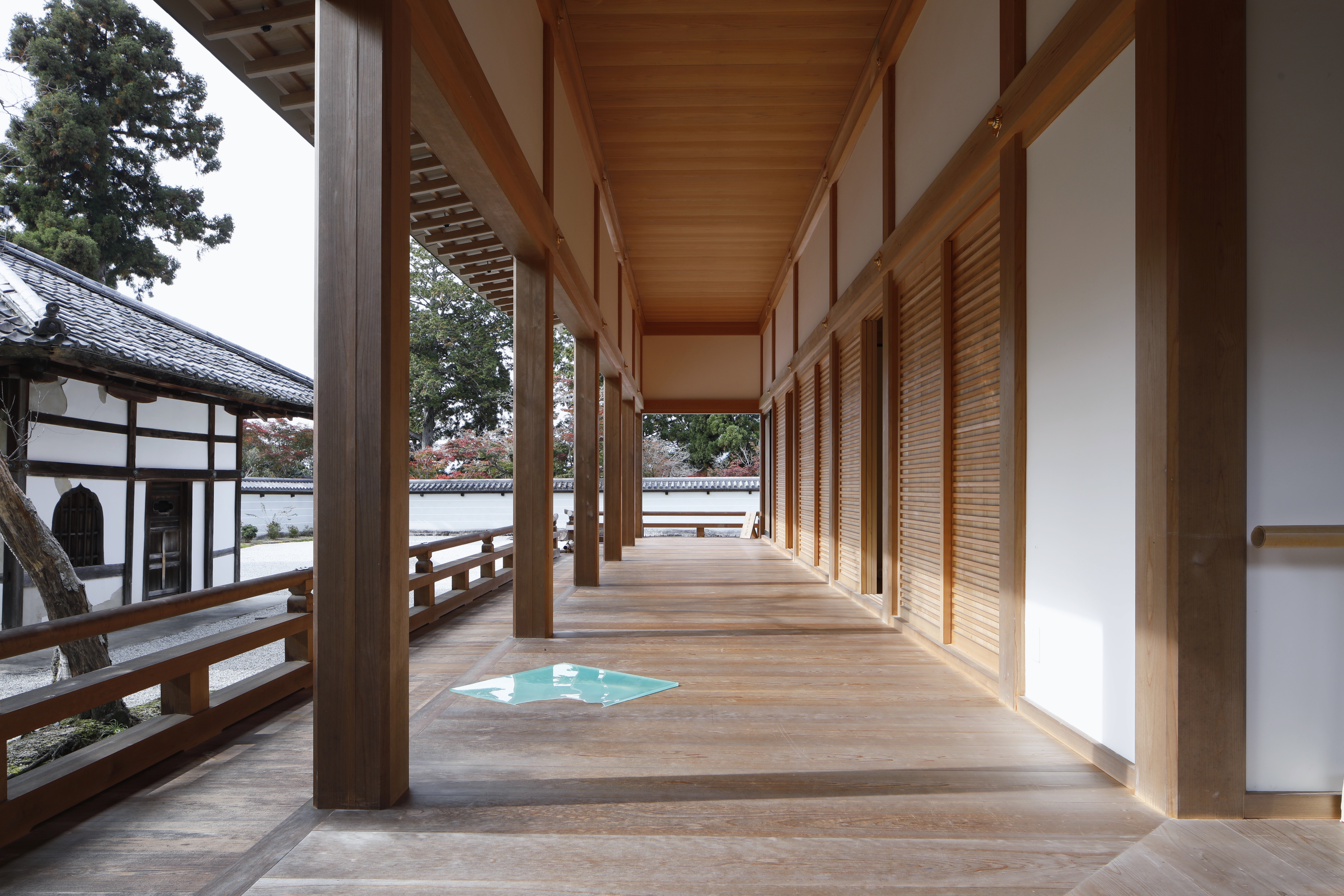 Responding to Manshu-in’s porous spatial boundary between the inside and the outside, Yamaoka guides the viewer by employing the toggling perspectives of looking into and out of, from a distance and close-up. Her works, partially exposed to the elements, catch the intensity of sunlight and shadows at different times of the day, reflect what lies beyond through changing air currents and wind, and coalescing perception with the viewer’s internal rhythm.