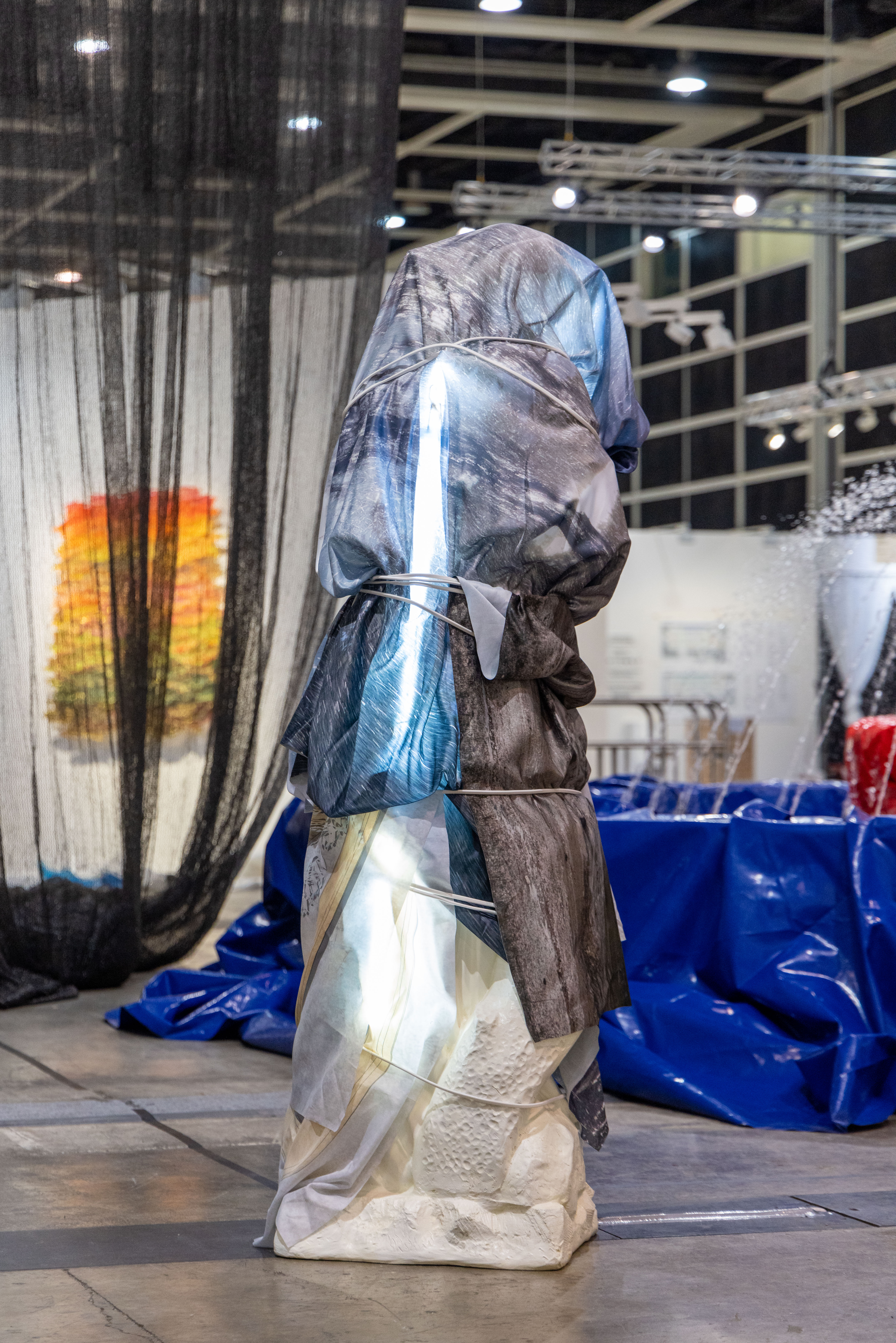 馬凌畫廊於巴塞爾藝術展香港展會「藝聚空間」 展出娜布其裝置作品《噴泉:夜晚花園》 (2020)。這大型噴泉進一步以水泵、防水布、鋼質框架及戶外廣告材料挪用並重塑了噴泉的形象,強調了受控流水的反紀念碑意義,將權力的華貴象徵轉換為了複雜物質關係的集合。