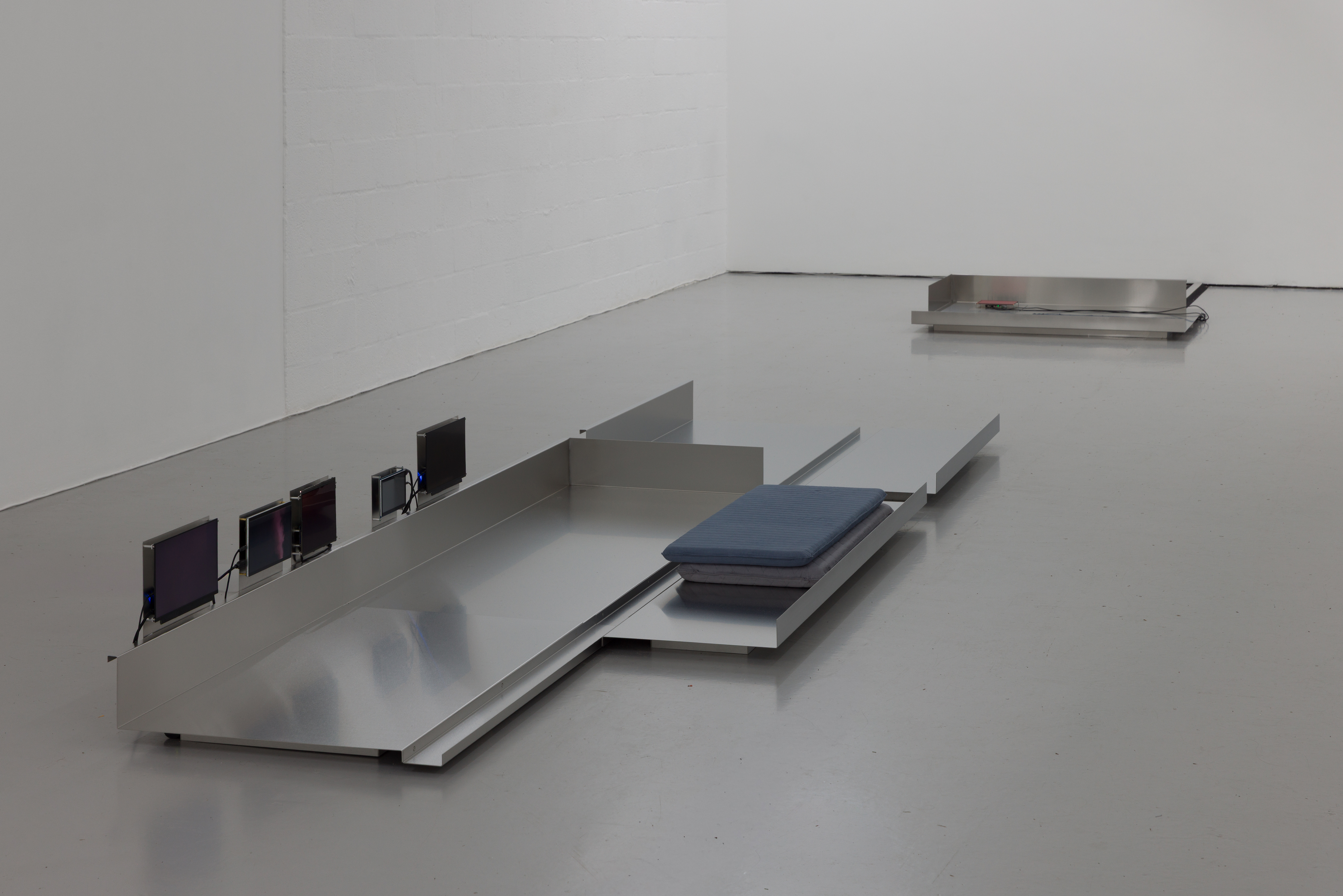 在Spike Island的展覽中,菲利普·黎的創作回到了那些象徵著禁錮的常見物品:托盤、盤子、和其他通常用於盛放食物或水的容器,以及更大的可以容納人體的容器,如床、籠子。一種奇異的籠狀結構矗立在Spike Island的中央展廳。這個由鍍鋅金屬製成的裝置被懸掛在半空中,其結構可見藝術家對於城市基礎建設的觀察,例如用於安裝監控和信號設備的結構。幽靈般的聲響迴盪在展廳之中,其機械般的節奏徬彿是Spike Island工業歷史的迴響。這件作品同時喚起了一種對邊緣性的關注以及潛意識的警覺,並指向管理和控制的意涵。
